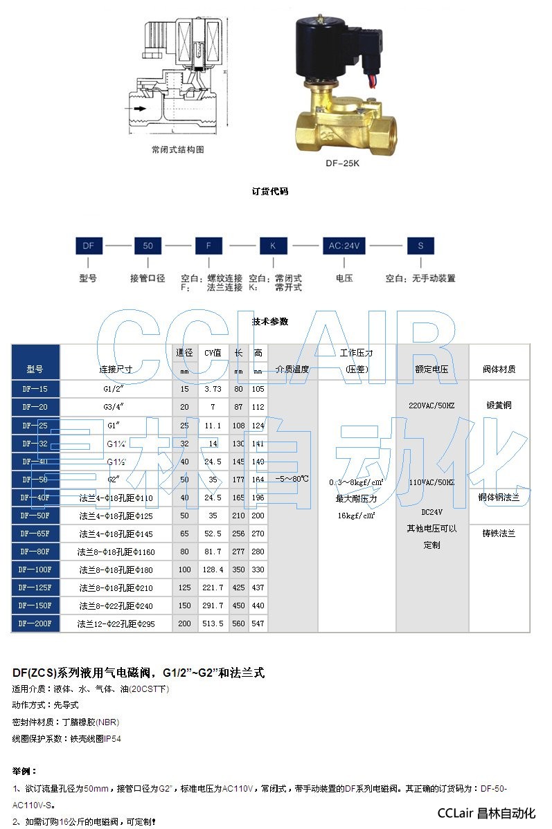 DF-15,DF-20,DF-25,DF-32,DF-40,DF-50,液用气电磁阀,G1/2〞~G2〞和法兰式
