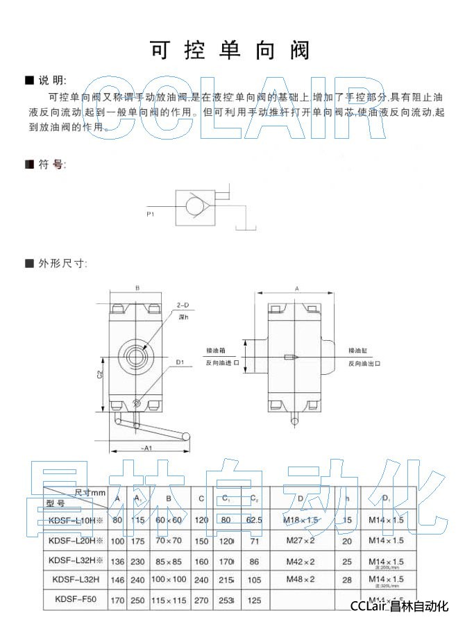 KDSF-L10H,KDSF-L20H,KDSF-L32H,KDSF-F50,单向阀