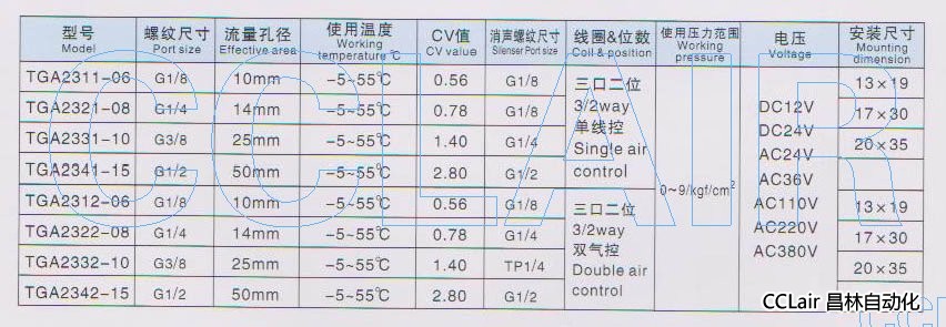 TGA2311-06,TGA2321-08,TGA2331-10,TG2341-15,气控阀