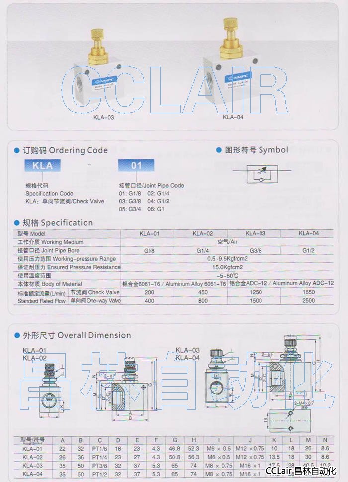 KLA-01,KLA-02,KLA-03,KLA-04,KLA-05,KLA-06,单向节流阀