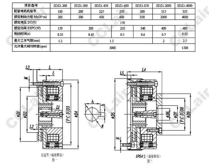 大功率制动器线圈工作电压常规为直流170V。本厂有专为制动器配套的ZL、ZL1型整流电源,具有输入输出保护线路,体积小、工作可靠,整体密封,可直接安装于电机的接线盒内,接线方式详见ZL整流电源接线图。