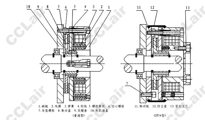 3、当制动器装在电机上,若电机起动困难或有噪音时,应检查制动器,按本《说明书》第三条调整。