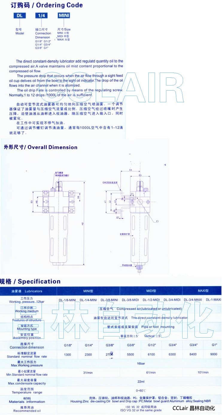 DL-1/8-MINI,DL-1/4-MINI,DL-3/8-MINI,油雾器