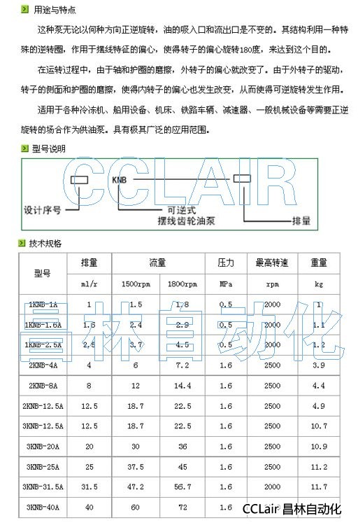 1KNB-1A,1KNB-1.6A,1KNB-2.5A,可逆式摆线齿轮油泵