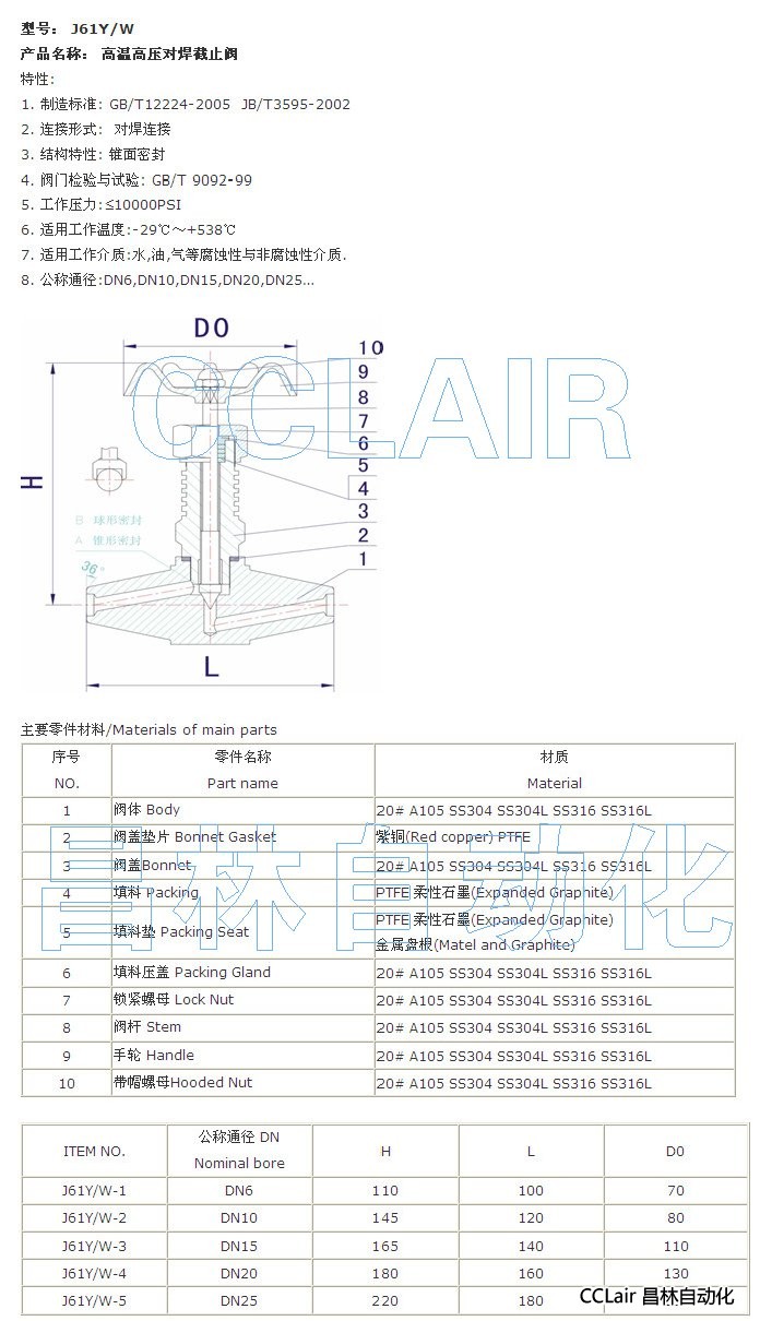 J61Y/W-1,J61Y/W-2,J61Y/W-3,J61Y/W-4,J61Y/W-5,高温高压对焊截止阀