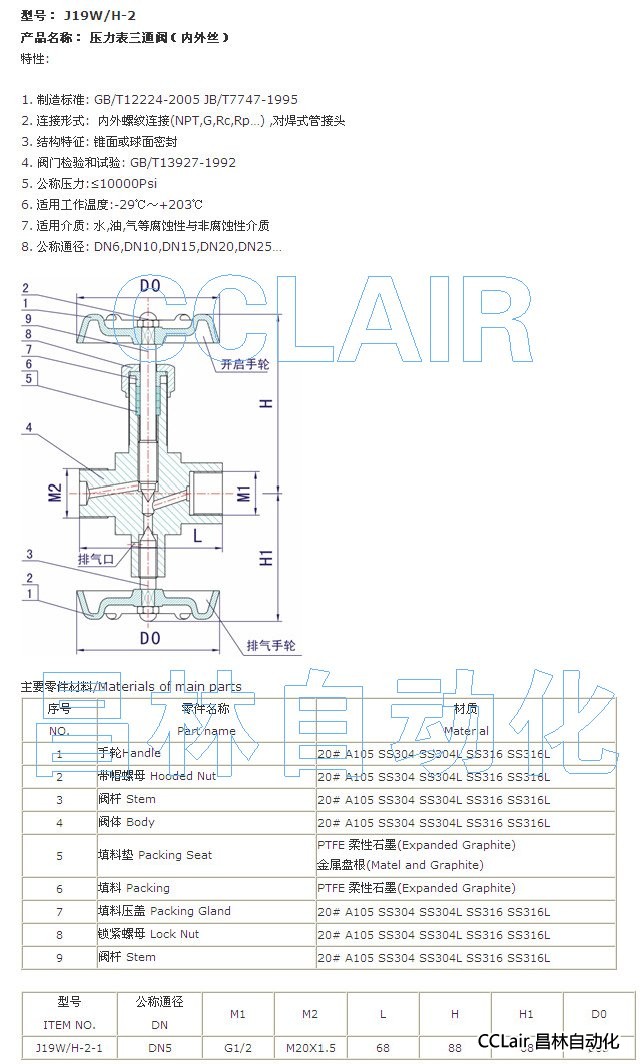 J19W-2-1,J19H-2-1,压力表三通阀(内外丝)