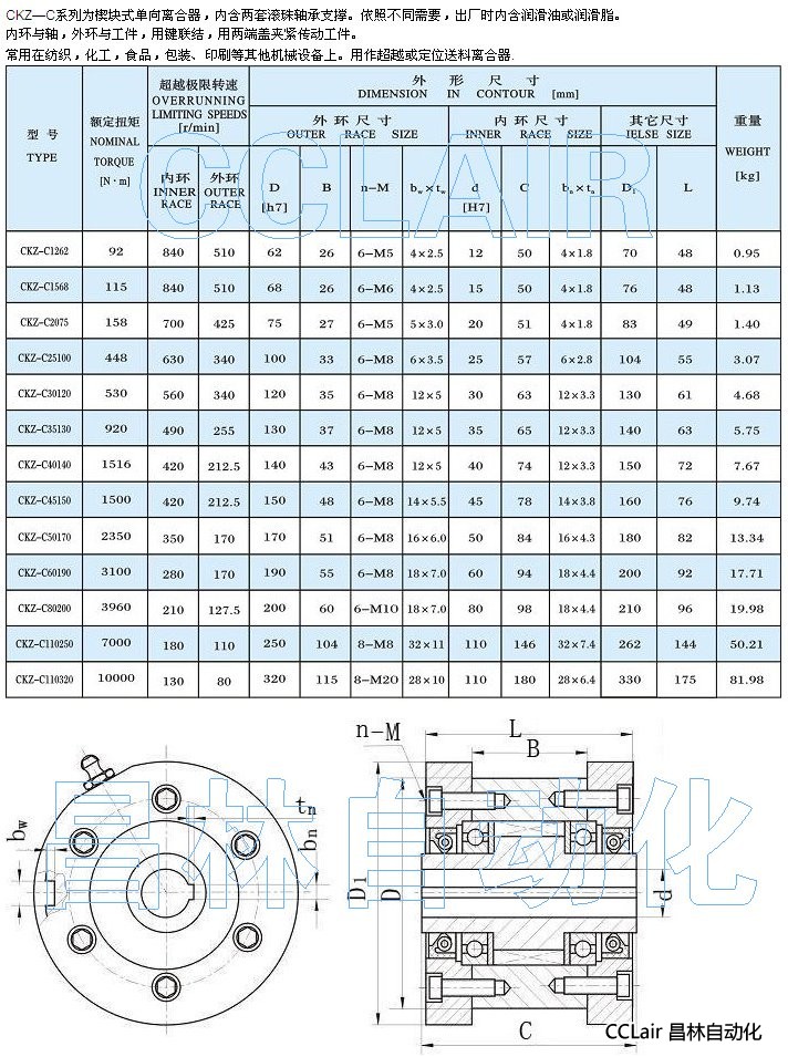 CKZ-C1262,CKZ-C1568,CKZ-C2075,CKZ-C25100,单向离合器