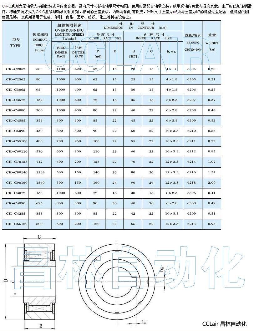 CK-C2052,CK-C2562,CK-C3062,CK-C3572,单向离合器