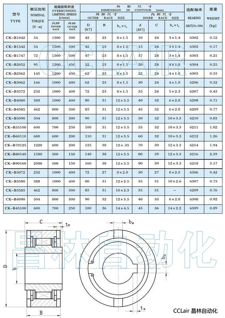 CK-B1042,CK-B1542,CK-B1747,CK-B2052,单向离合器