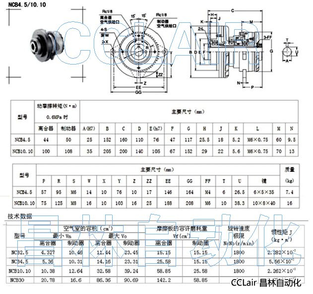 NCB4.5,NCB10.10,气动串联型离合制动器