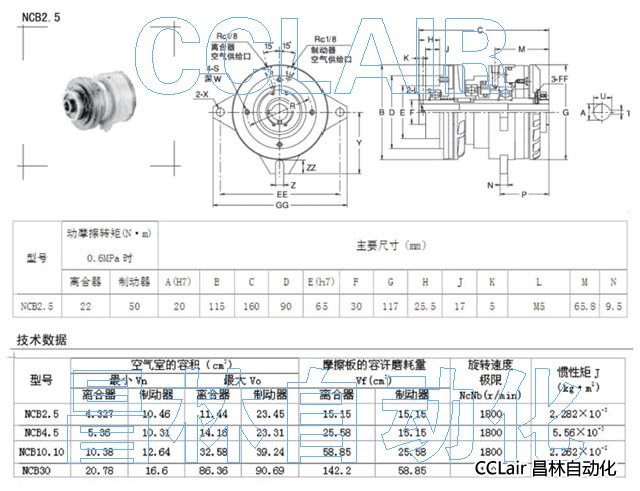 NCB2.5,气动串联型离合制动器