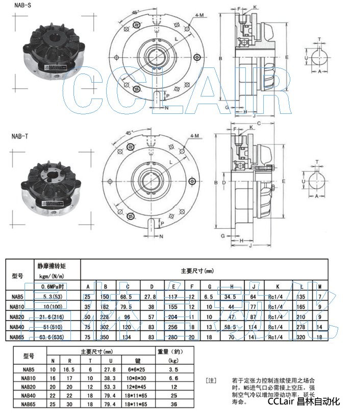 NAB5,NAB10,NAB20,NAB40,NAB65,(标准型)空压通轴式离合器