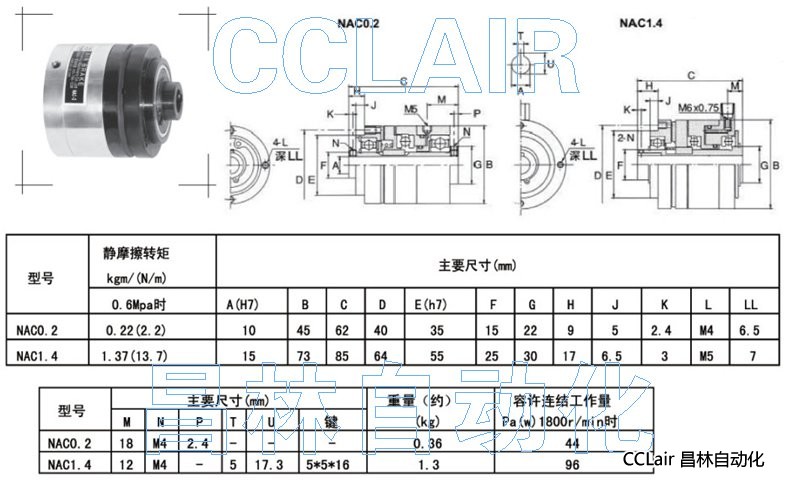 NAC0.2,NAC1.4,(微型)空压通轴式离合器