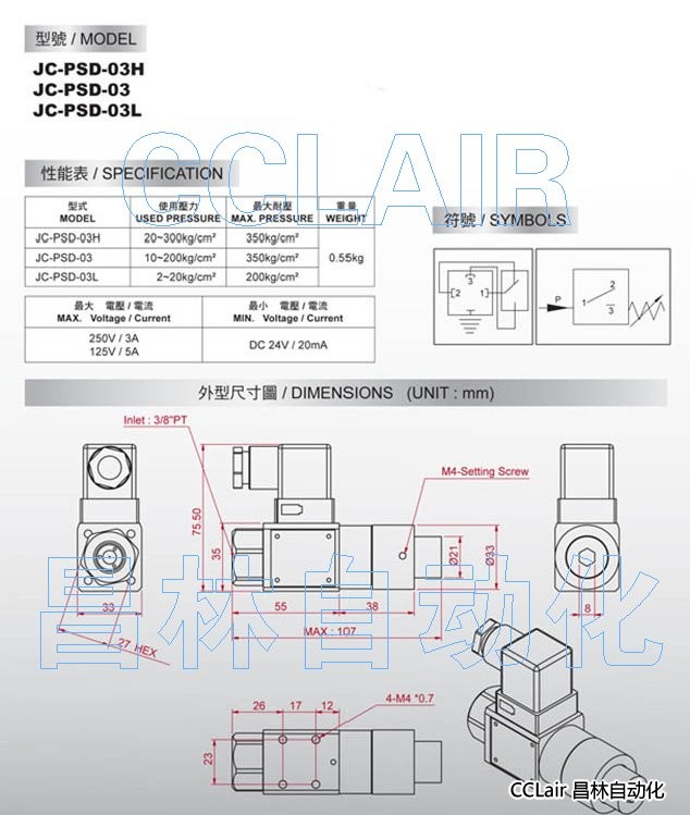 JC-PSD-03H, JC-PSD-03, JC-PSD-03L,压力开关