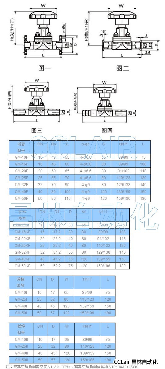 GM-10F,GM-16F,GM-20F,GM-25F,GM-32F,GM-40F,GM-50F,高真空隔膜阀