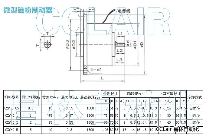 CZW-0.05,CZW-0.1,CZW-0.2,CZW-0.5,单出轴微型磁粉制动器