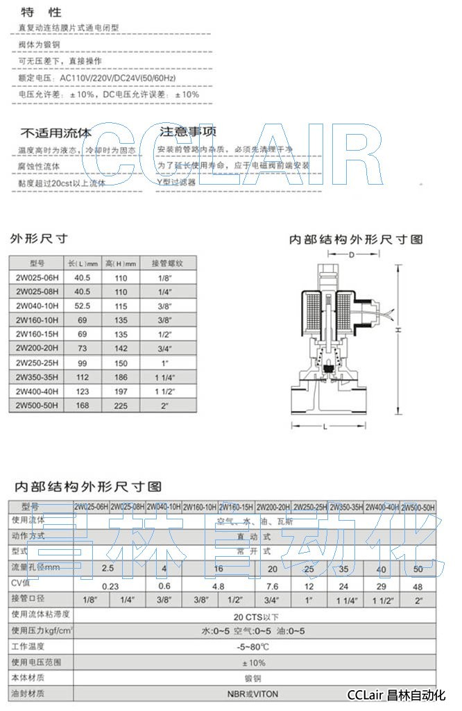 2W025-06H,2W025-08H,2W040-10H,2W160-10H,铜二位二通直动式电磁阀(常开型)