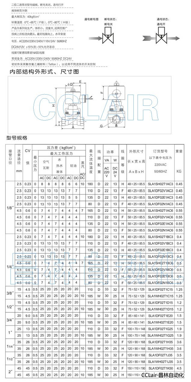 SLA1DF02T1C15,SLA1WH02T1C15,铜二位二通电磁阀(常闭型)