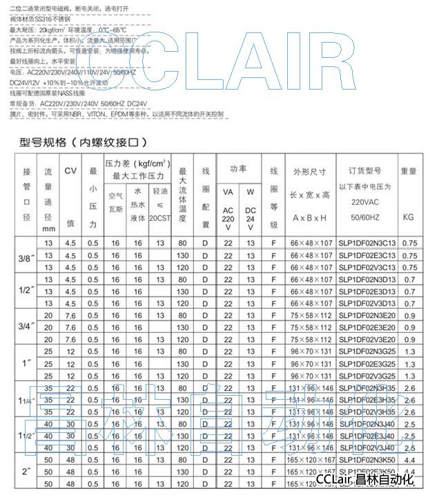 SLP1DF02N3C13,SLP1DF02E3C13,不锈钢二位二通电磁阀(常闭型)