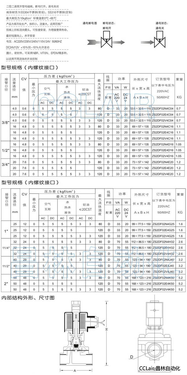 ZS2DF02N4G25,ZS2DF02E4G25,不锈钢二位二通零压差电磁阀(常开型)