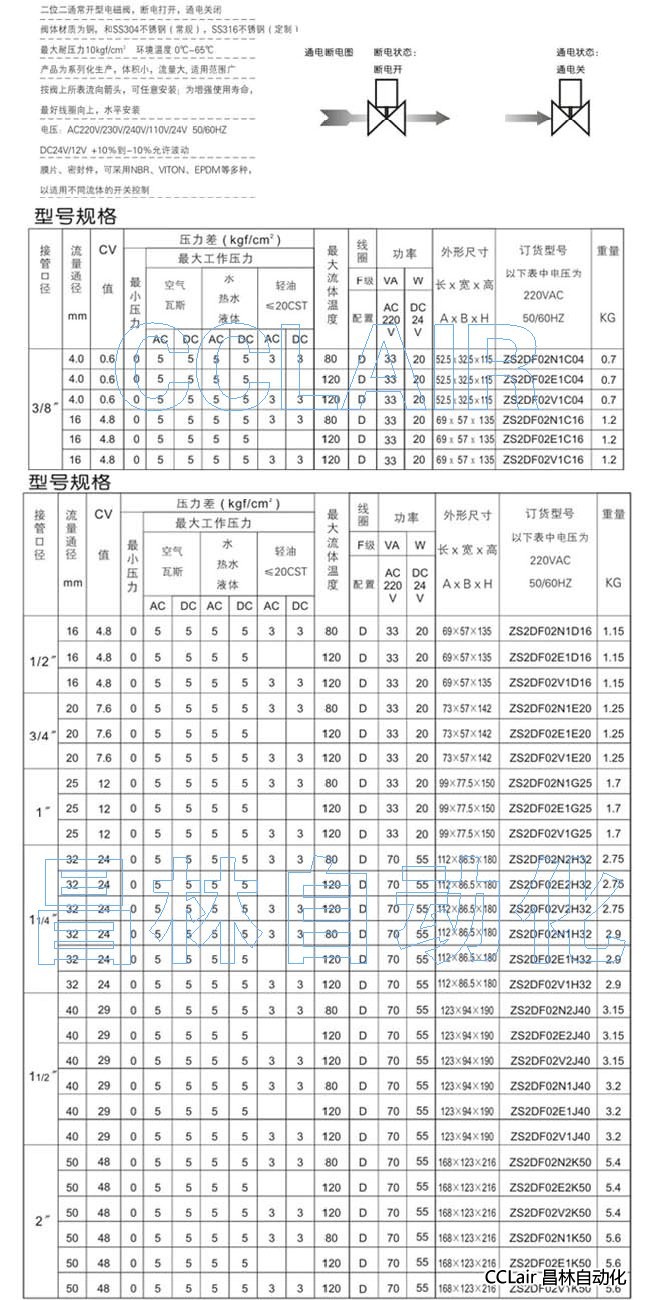 ZS2DF02E2H32,ZS2DF02V2H32,二位二通零压差电磁阀(常开型)