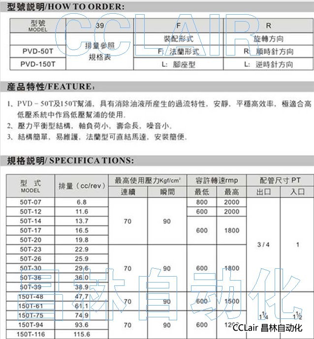 PVD-50T-07,PVD-50T-12,PVD-50T-14,PVD-50T-17,PVD-150T-61,PVD-150T-75,定量轮叶泵浦