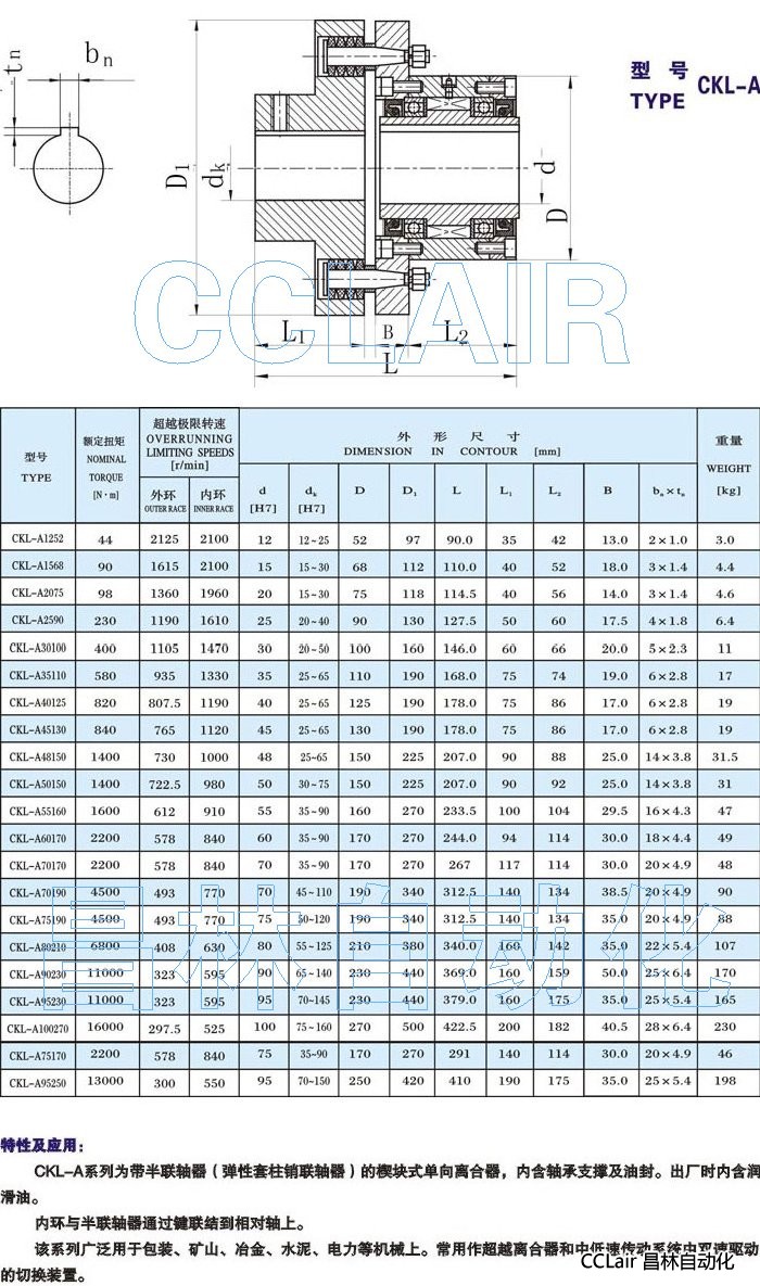 CKL-A1252,CKL-A1568,CKL-A2075,CKL-A2590,CKL-A30100,CKL-A35110,CKL-A40125,超越离合器