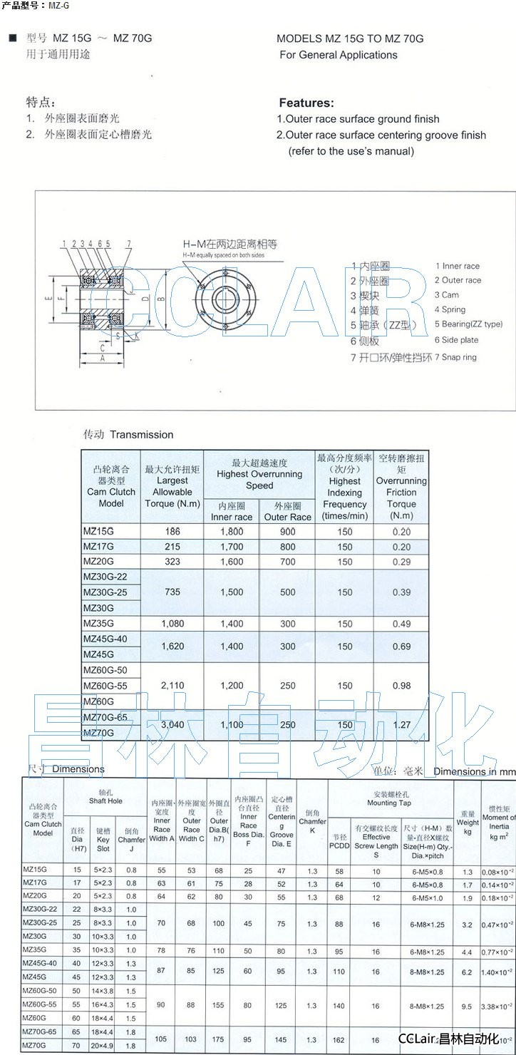 MZ15G,MZ17G,MZ20G,MZ30G-22,MZ30G-25,MZ30G,MZ35G,MZ45G-40,MZ45G,MZ60G-50,凸轮离合器