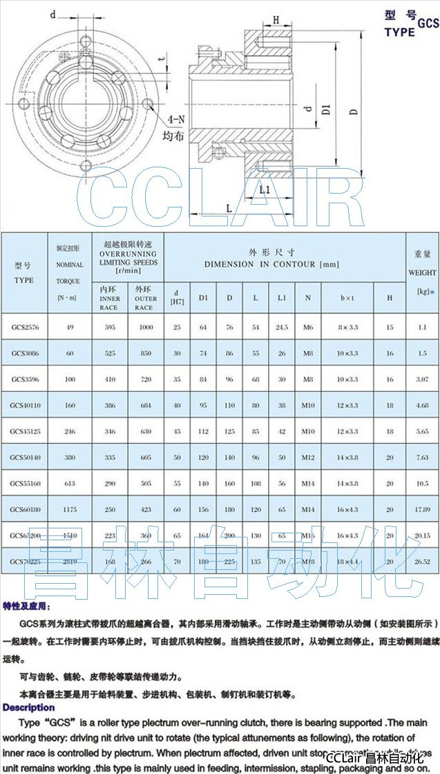 GCS2576,GCS3086,GCS3596,GCS40110,GCS45125,GCS50140,GCS55160,单向离合器