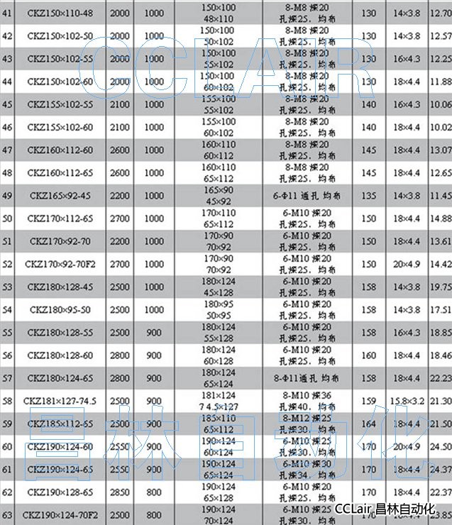 CKZ125*92-45,CKZ125*92-45F2,CKZ130*92-38,CKZ130*92-45,CKZ130*63-48,CKZ130*68-52,CKZ136*95-35,CKZ136*95-38,CKZ136*95-45,CKZ136*95-50,CKZ136*95-50F2,CKZ136.5*95-45,CKZ136*95.5-50.8,CKZ150*110-48,CKZ150*102-50,CKZ150*102-55,CKZ150*102-60,CKZ155*102-55,CKZ155*102-60,CKZ160*112-60,CKZ160*112-65,CKZ165*92-45,CKZ170*112-65,CKZ170*92-70,CKZ1701*92-70F2,CKZ180*128-45,CKZ180*95-50,CKZ180*128-55,CKZ180*128-60,无锡昌林,CKZ180*124-65,CKZ181*127-74.5,CKZ185*112-65,CKZ190*124-60,CKZ190*124-65,CKZ190*128-65,CKZ190*124-70F2,CKZ190*128-70,CKZ200*128-65,CKZ200*135-65,CKZ200*150-65F2,CKZ210*116-48,CKZ210*132-70,CKZ220*120-85,230*120-60,CKZ230*120-70,CKZ230*120-75,CKZ230*132-70,CKZ230*132-75,CKZ230*120-80,CKZ230*132-80,CKZ230*120-85,CKZ230*120-90,CKZ238*120-70,CKZ245*120-100,CKZ250*140-80,CKZ270*115-90,CKZ300*160-100,CKZ300*160-110