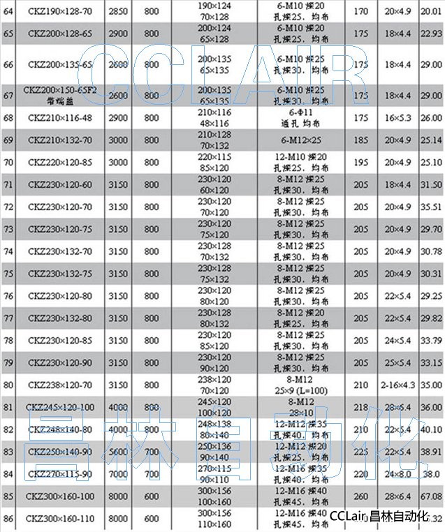 CKZ100*64-20,CKZ100-64-24,CKZ100*70-25,CKZ100*64-30,CKZ100*70-30,CKZ100*70-30F2,CKZ100*82-30,CKZ100*82-30F2,CKZ105*34-25,CKZ105*51-28,CKZ108*89-31.5,CKZ110*78-35,CKZ120*92-38,CKZ120*55-40,CKZ120*92-40,CKZ120*92-42,CKZ120*92-42F4,CKZ125*92-28,CKZ125*80-30,无锡昌林,CKZ125*92-38,CKZ125*80-40,CKZ125*92-42,