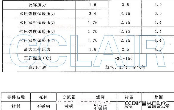 二、Gy41W不锈钢氧气过滤器性能规范: