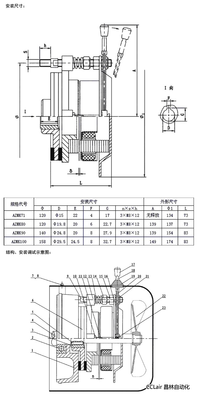 AZMK系列三相交流制动器,产品结构紧凑,制动力矩和间隙调节方便。手动释放可利用手柄向后一扳,制动器就可临时脱开制动状态,操作方便可靠。