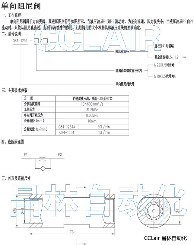 Q84-1254,Q84-1254-A/1.5,Q84-1254-A/1.9,单向阻尼阀