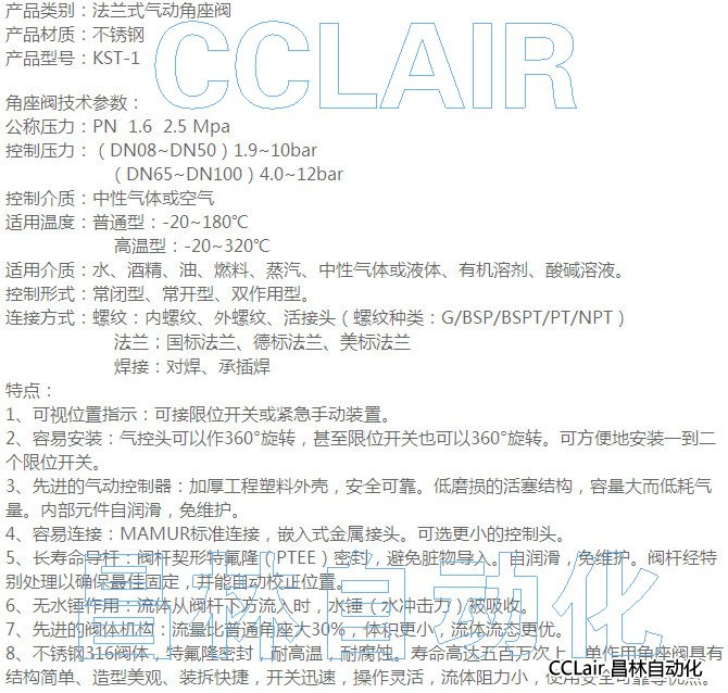 KST-1,法兰式气动角座阀