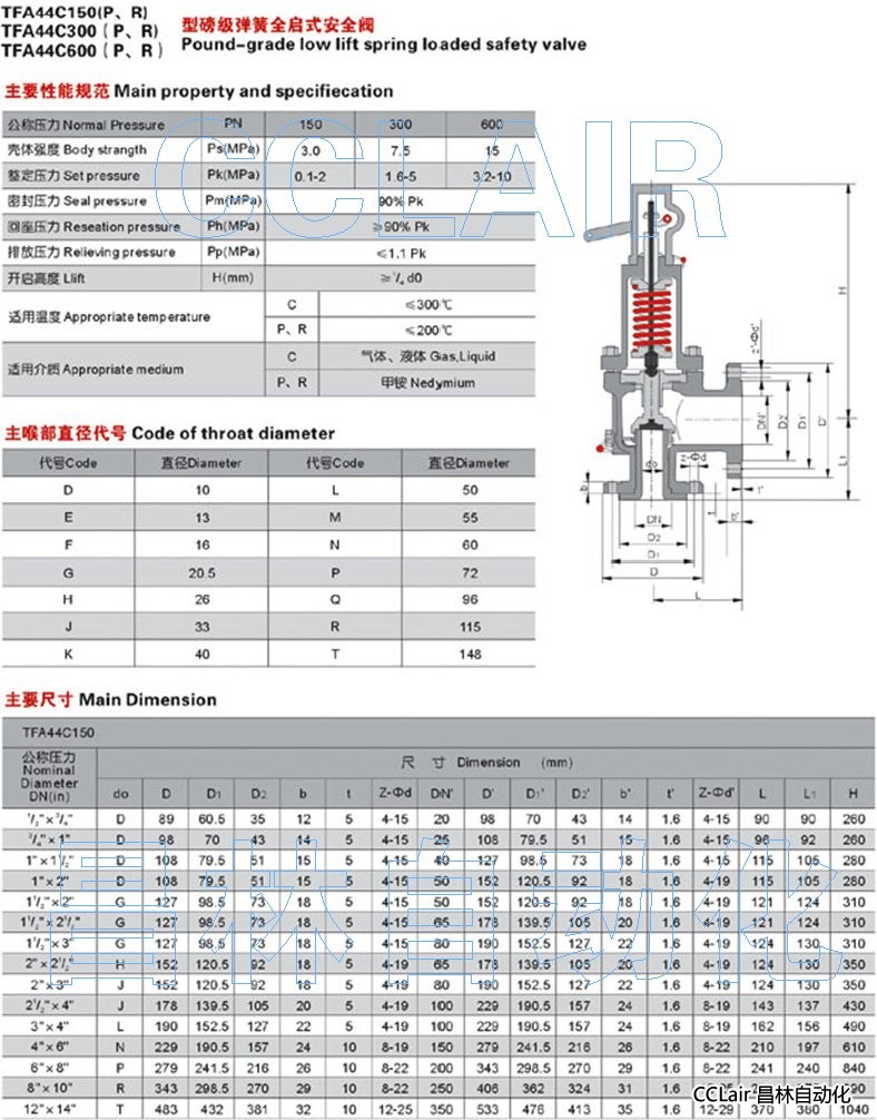 TFA44C150,TFA44C300,TFA44C150P,TFA44C300P,TFA44C150R,TFA44C300R,弹簧全启式安全阀