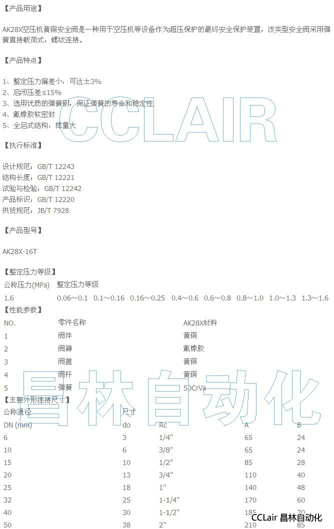 AK28X-16-DN6,AK28X-16T-DN6,AK28X-16-DN10,AK28X-16T-DN10,空压机黄铜安全阀