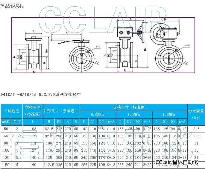 D41X-16Q-DN50,D41X-16Q-DN65,D41X-16Q-DN80,无锡昌林,D41X-16Q-DN100,D41X-16Q-DN125,