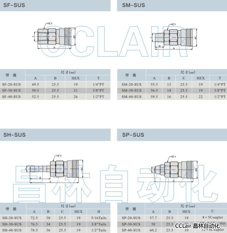 SF-20-SUS,SF-30-SUS,SM-20-SUS,SH-20-SUS,SP-20-SUS,SP-30-SUS,双手操作快换接头