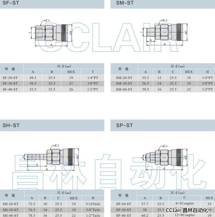 SF-20-ST,SF-30-ST,SM-20-ST,SH-20-ST,SH-30-ST,SP-20-ST,SP-30-ST,双手操作快换接头