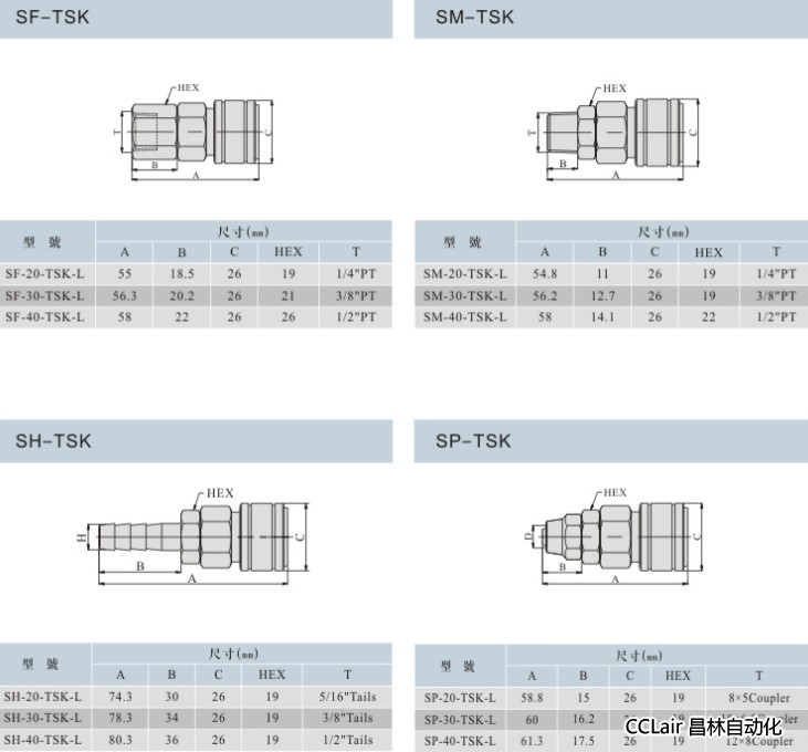 SF-20-TSK,SF-40-TSK,SM-20-TSK,SM-30-TSK,SH-20-TSK,SH-30-TSK,SP-20-TSK,单手操作快换接头