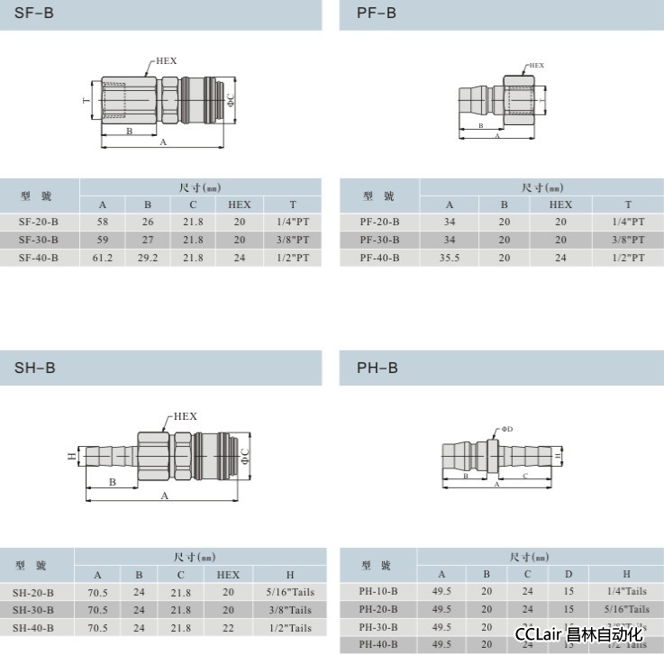 SF-20,SF-30,SF-40,PF-20,PF-30,PF-40,SH-20,SH-30,SH-40,PH-10,PH-20,PH-30,单手操作快换接头
