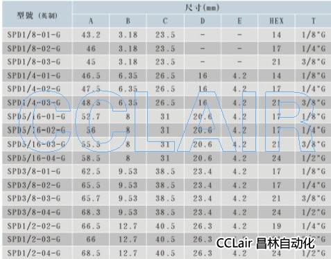 SPD1/8-01-G,SPD1/8-02-G,SPD1/4-02-G,SPD5/16-01-G,SPD3/8-01-G,SPD1/2-04-G,接头