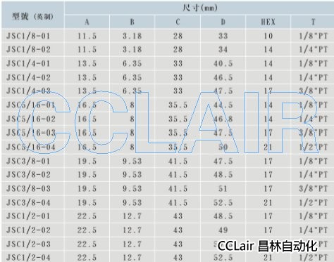 JSC1/8-01,JSC1/8-02,JSC1/4-02,JSC5/16-01,JSC3/8-01,JSC3/8-03,JSC1/2-04,接头