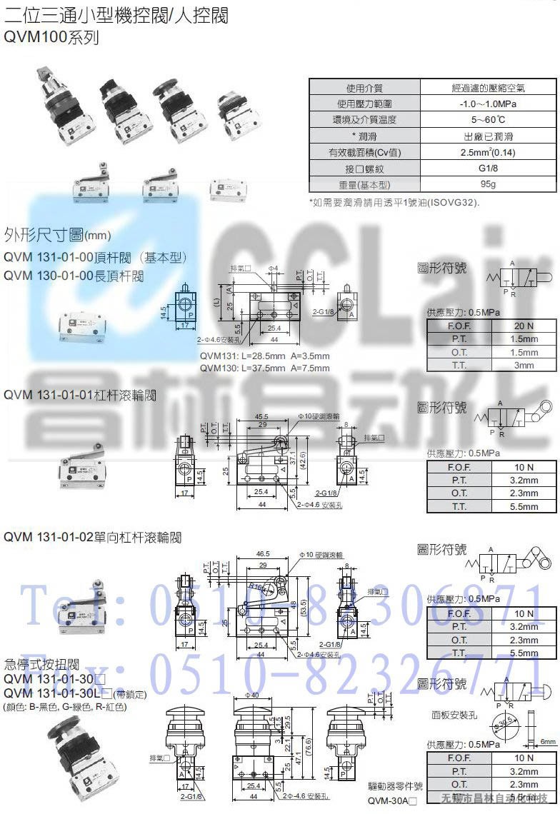 QVM131-01-30L,二位三通小型机控/人控换向阀
