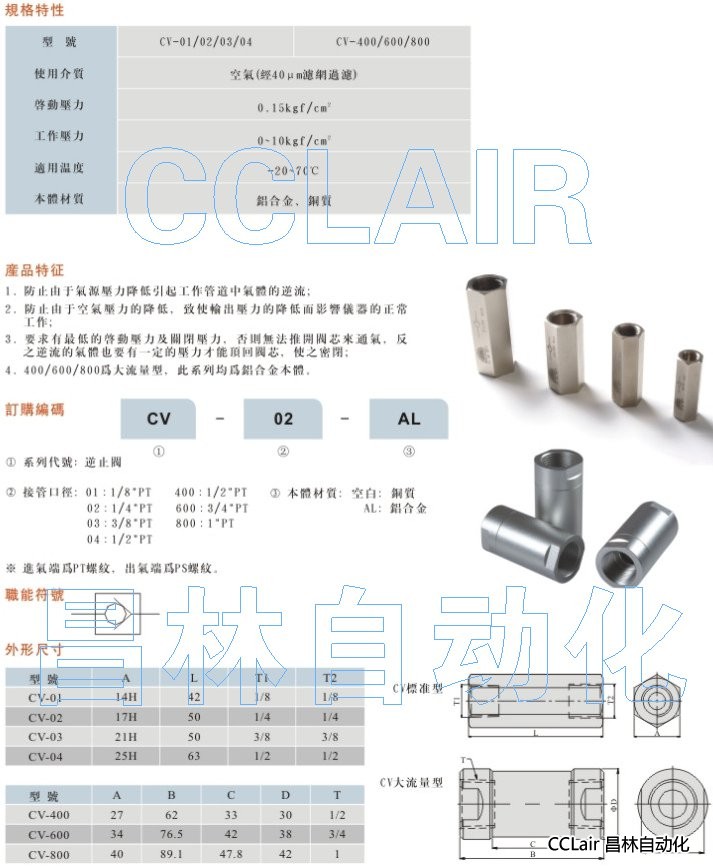CV-01-AL,CV-02-AL,CV-03-AL,CV-04-AL,CV-400-AL,CV-600-AL,CV-800-AL,逆止阀