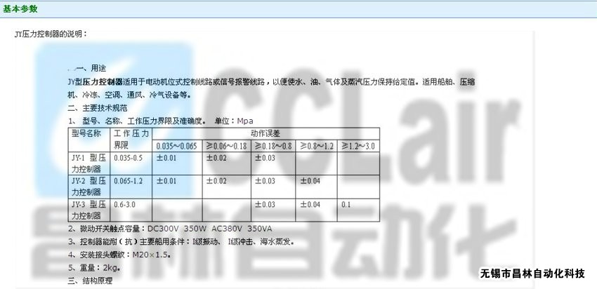 JY-1,JY-2,JY-3,压力控制器