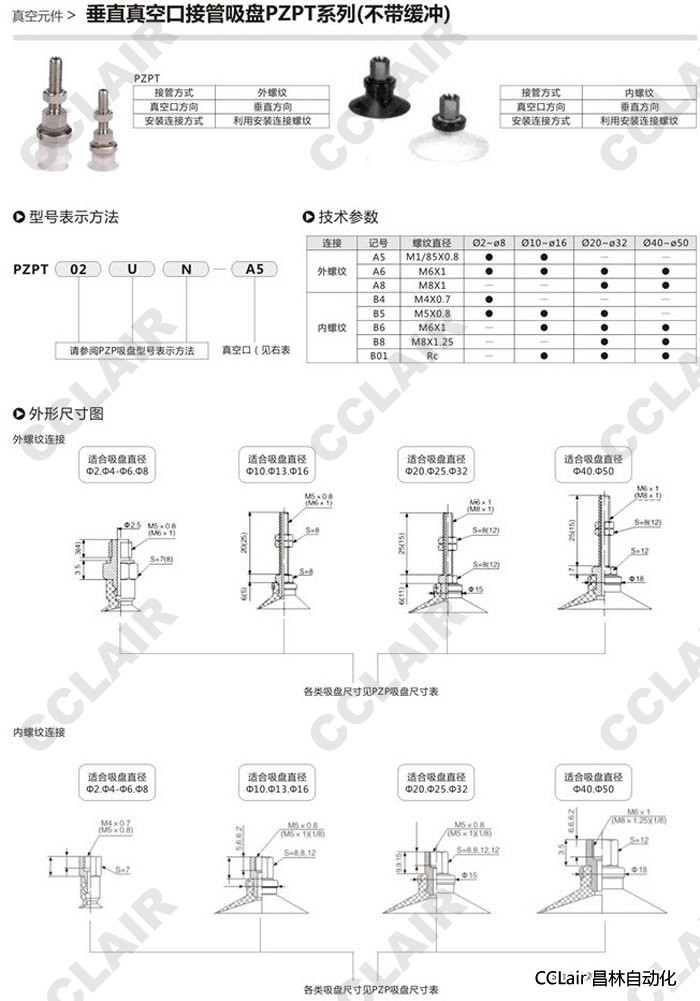 PZPT02C,PZPT04C,PZPT06C,PZPT08C,PZPT10C,PZPT13C,PZPT16C,PZPT04B,PZPT06B,接管吸盘
