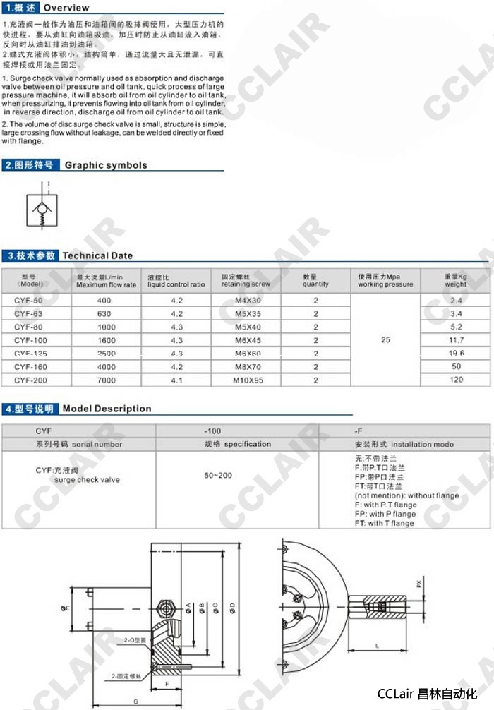 CYF-50,CYF-63,CYF-80,CYF-100,CYF-125,CYF-160,CYF-200,充液阀