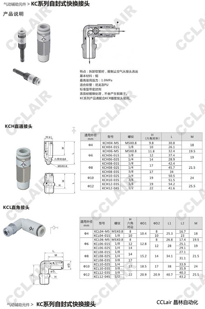 KCL04,KCL06,KCL08,KCL10,KCL12,自封式快换接头
